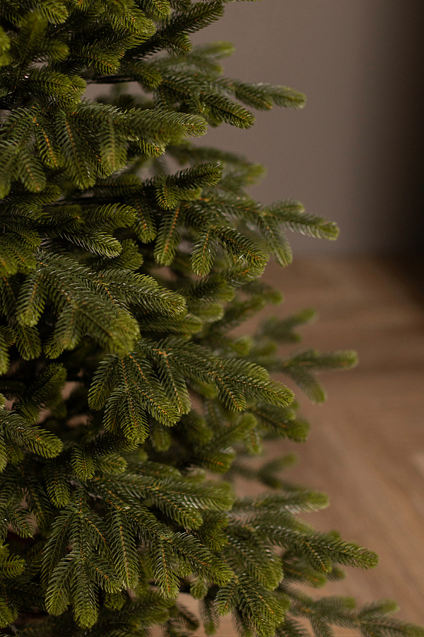 Елка полностью выполнена из литых веточек, которые в точности повторяют форму натуральной ветви. Они прочные, совершенно не осыпаются и сохраняют первоначальный внешний вид долгие годы.