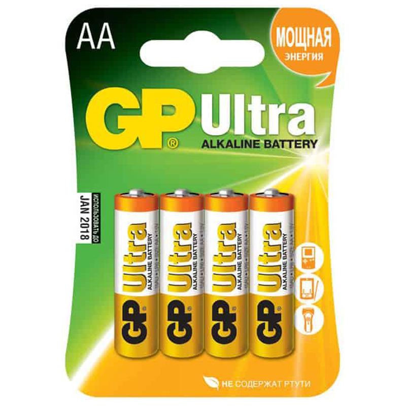 GP Ultra Alkaline AA – набор из 4-х «пальчиковых» батареек с широкой сферой применения. Элементы питания серии Ultra Alkaline приведут в действие радиотелефоны, фонари, электронные будильники, настенные часы, переносные аудио- и видеоплееры, компьютерные клавиатуры и мыши, консоли и детские игрушки на радиоуправлении.