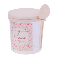 Крышка плотно закрывает банку и надежно защищает продукты от влаги и мусора. На ободке крепится мерная ложка для удобства использования.
