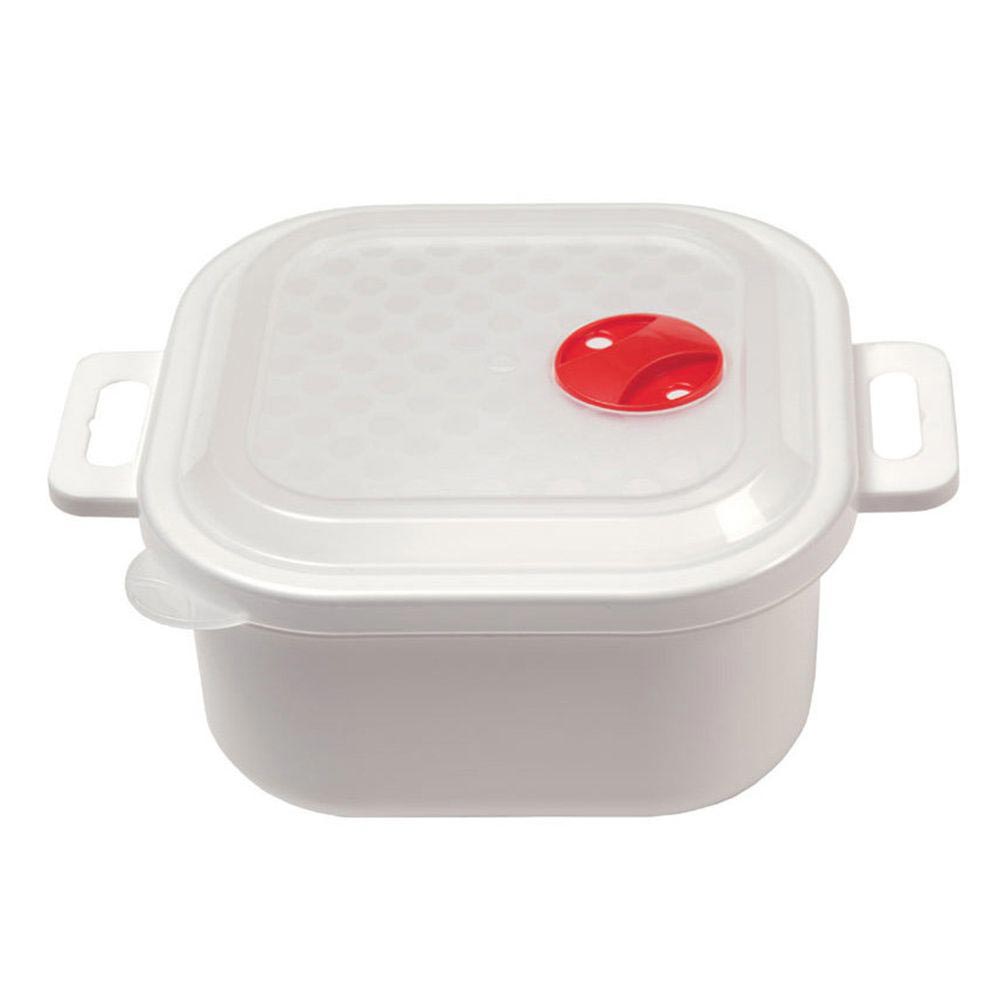 Емкость можно использовать для хранения продуктов в холодильнике, а так же для разогревания пищи в микроволновой печи. В микроволновой печи можно использовать, не снимая крышки (при открытом клапане), что ускоряет процесс и предохраняет внутреннюю поверхность микроволновой печи от загрязнения. Клапан для выпуска пара имеет два положения: открыт/закрыт. Прозрачная крышка позволяет следить за процессом приготовления пищи. Емкость имеет удобные ручки.