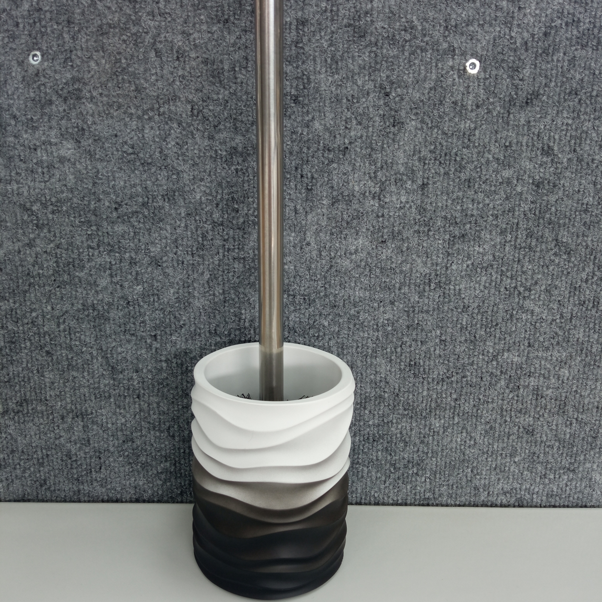 Изготовленный из высококачественного полирезина, ерш MIST сочетает в себе прочность и изысканность. Его минималистичный дизайн и волнообразная форма создают ощущение лёгкости и гармонии, а градиентный переход от белого к темно-серому цвету добавляет аксессуару изысканности и уникальности.