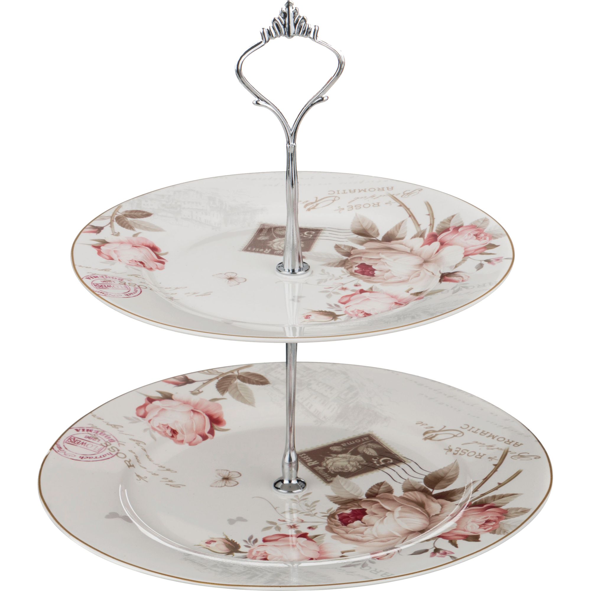 Двухъярусная этажерка “Мэрибель” выполнена из высококачественного фарфора. Изделие декорировано изящным рисунком и сочетает в себе изысканный дизайн с максимальной функциональностью.