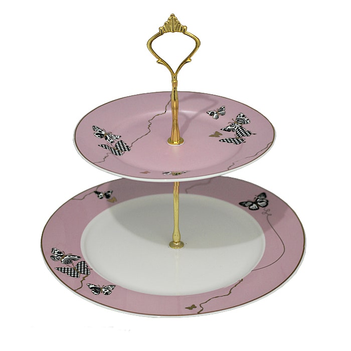 Двухъярусная этажерка Lenardi Butterfly из фарфора в подарочной упаковке. Тарелки этажерки изготовлены из высокачественного фарфора, покрыты глазурью и декорированы рисунком бабочки.