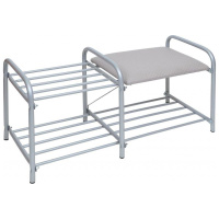 Этажерка для обуви имеет усиленный металлический каркас и мягкое сиденье из винилискожи.