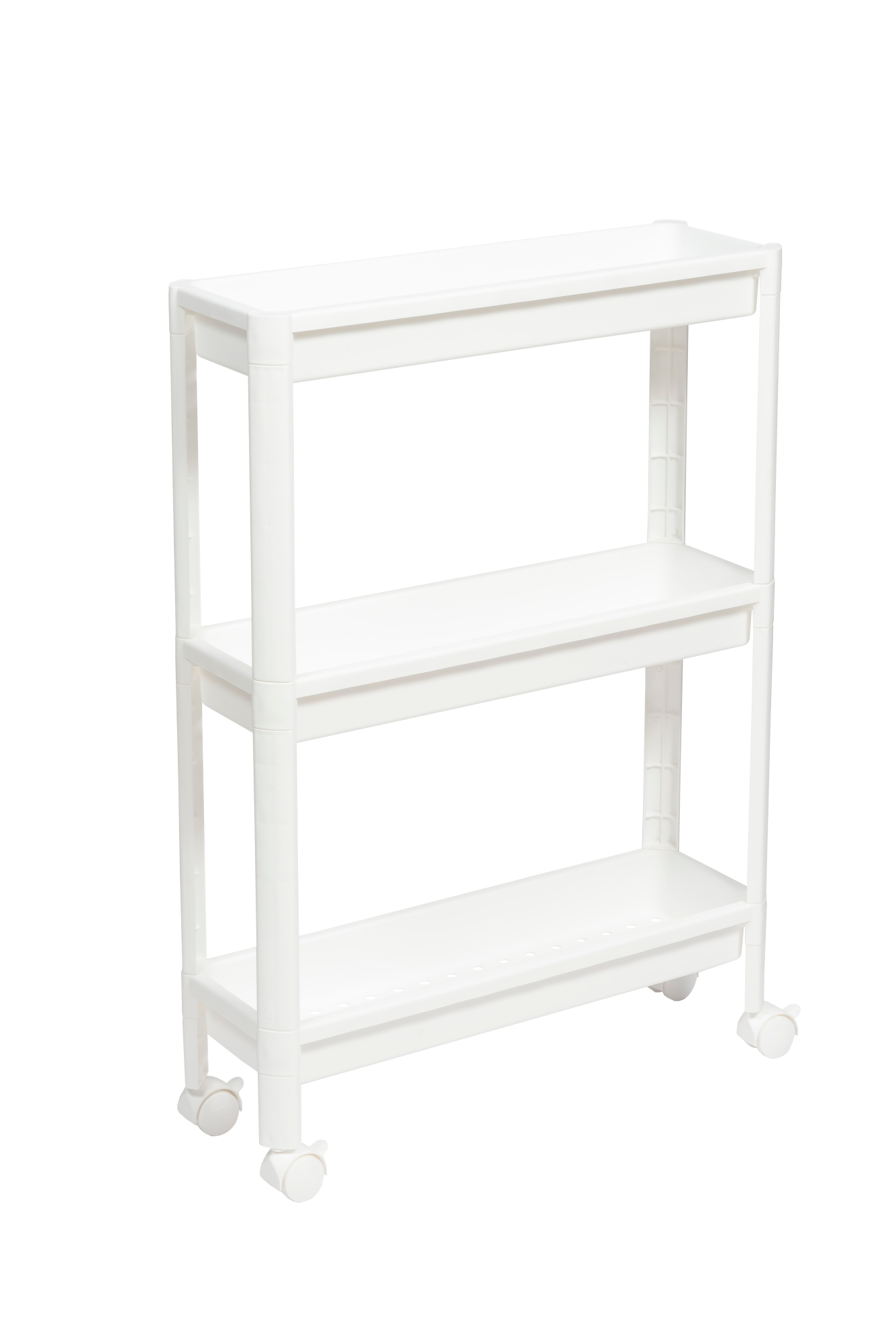 Этажерка Violet VIKEA узкая, 3-х ярусная, на колесах, белая 782306 – идеальное решение для организации пространства на кухне и в ванной, в гостиной и на балконе, а также в любом другом помещении. Прекрасно впишется в пространство любой комнаты.