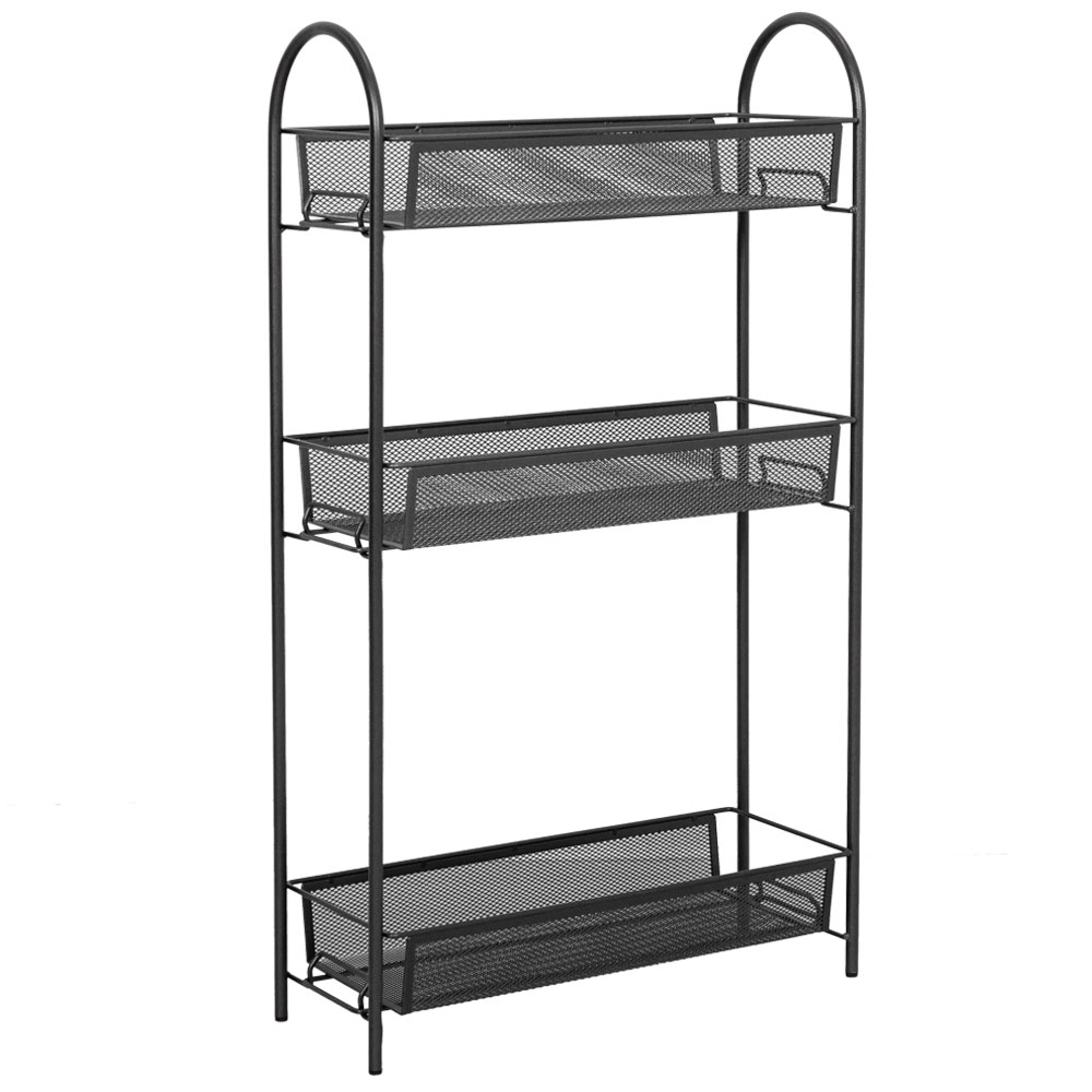 Сборно-разборная конструкция; три удобных корзины; увеличенное расстояние между нижними корзинами для высоких предметов; допустимая нагрузка до 10 кг на корзину.