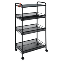 Сборно-разборная конструкция, включающая в себя четыре удобных корзины, пластиковый крючок для мелочей, пластиковые колёса. Между нижними корзинами предусмотрено увеличенное расстояние для высоких предметов.