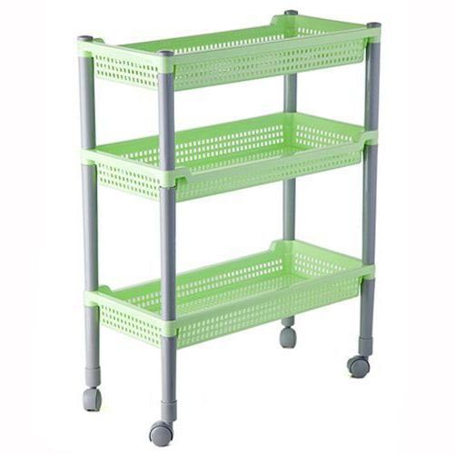 Этажерка "Флер" с 3 узкими полками выполнена из пластика и предназначена для хранения различных предметов на кухне или в ванной.