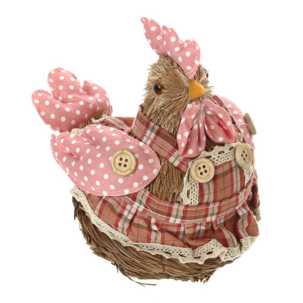 Фигурка декоративная "Курица" изготовлена из текстильных и полимерных материалов, соломы.