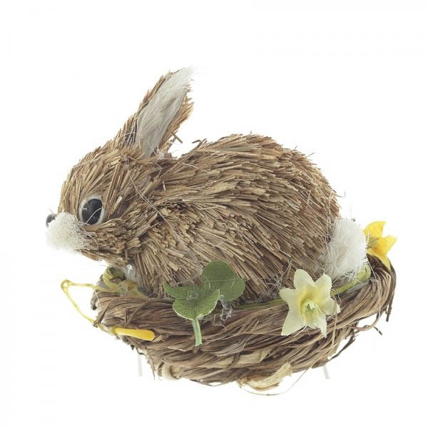 Фигурка декоративная "Зайчонок" изготовлена из натуральных, полимерных и текстильных материалов.