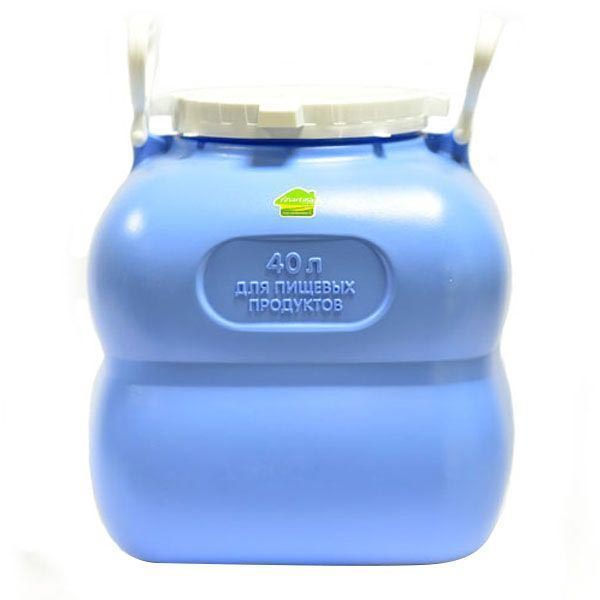 Толстый пищевой пластик позволяет хранить в таре объёмом в 40 л.: