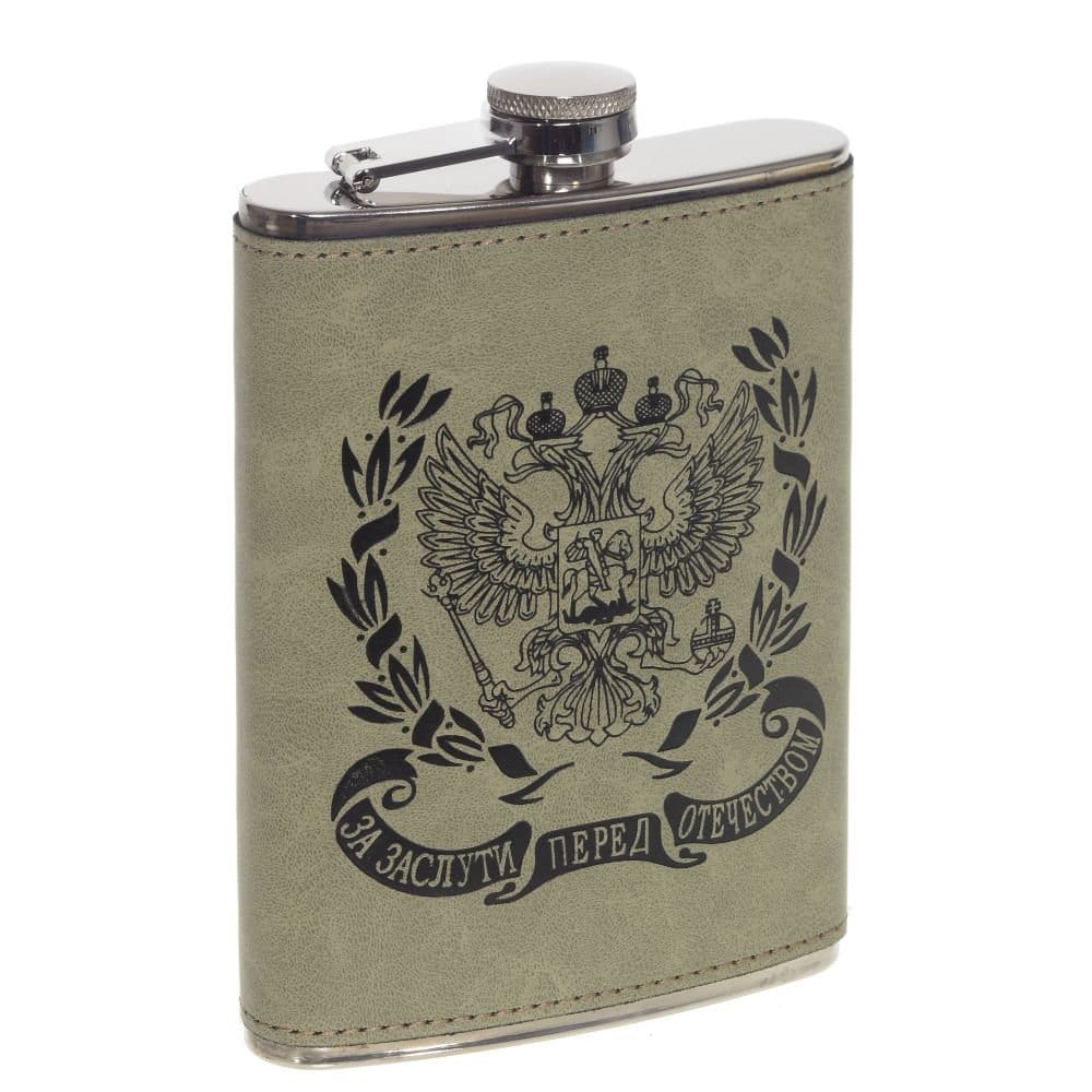 Фляжка изготовлена из коррозионностойкой стали, декорирована экокожей с рисунком.