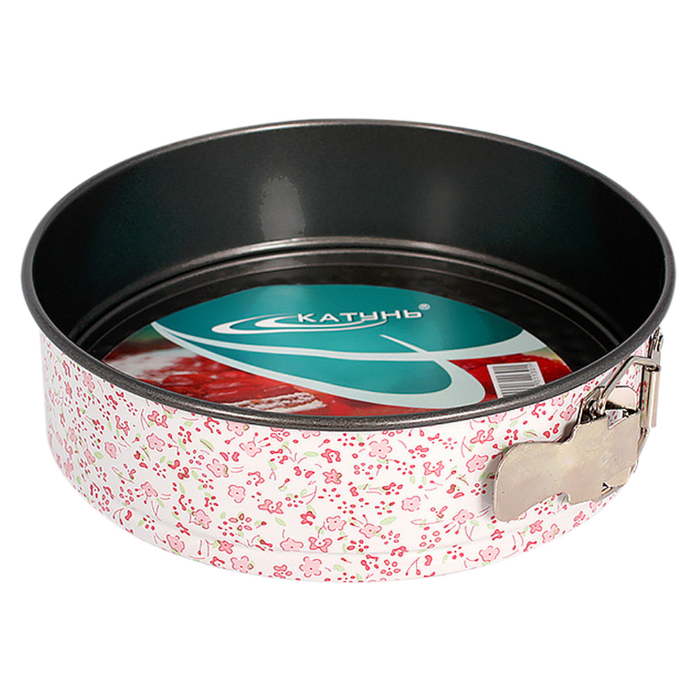 Форма разборная с антипригарным покрытием используется для выпечки, диаметр 26 см, высота 7 см. Материал: углеродистая сталь с керамическим антипригарным покрытием. Легко моется после приготовления. Перед каждым использованием форму необходимо смазать небольшим количеством масла.