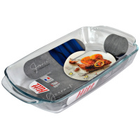 Прямоугольная форма выполнена из термостойкого стекла. Его можно использовать как для приготовления пищи, так и для изящной подачи к столу. Может быть использован в микроволновых печах, духовках и морозильных камерах. Привлекательный дизайн стеклянной посуды позволяет подавать блюда сразу на стол, чего мы обычно не делаем, используя металлические кастрюли или противни. Низкая теплопроводность материала сохранит тепло приготовленного лакомства в течение всего ужина или обеда.