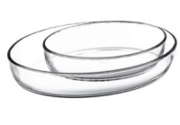 В стеклянной жаропрочной посуде можно готовить пищу в духовых шкафах и микроволновых печах при t° +300 С. Она годится для электроплит, в т.ч. со стеклокерамическим покрытием.