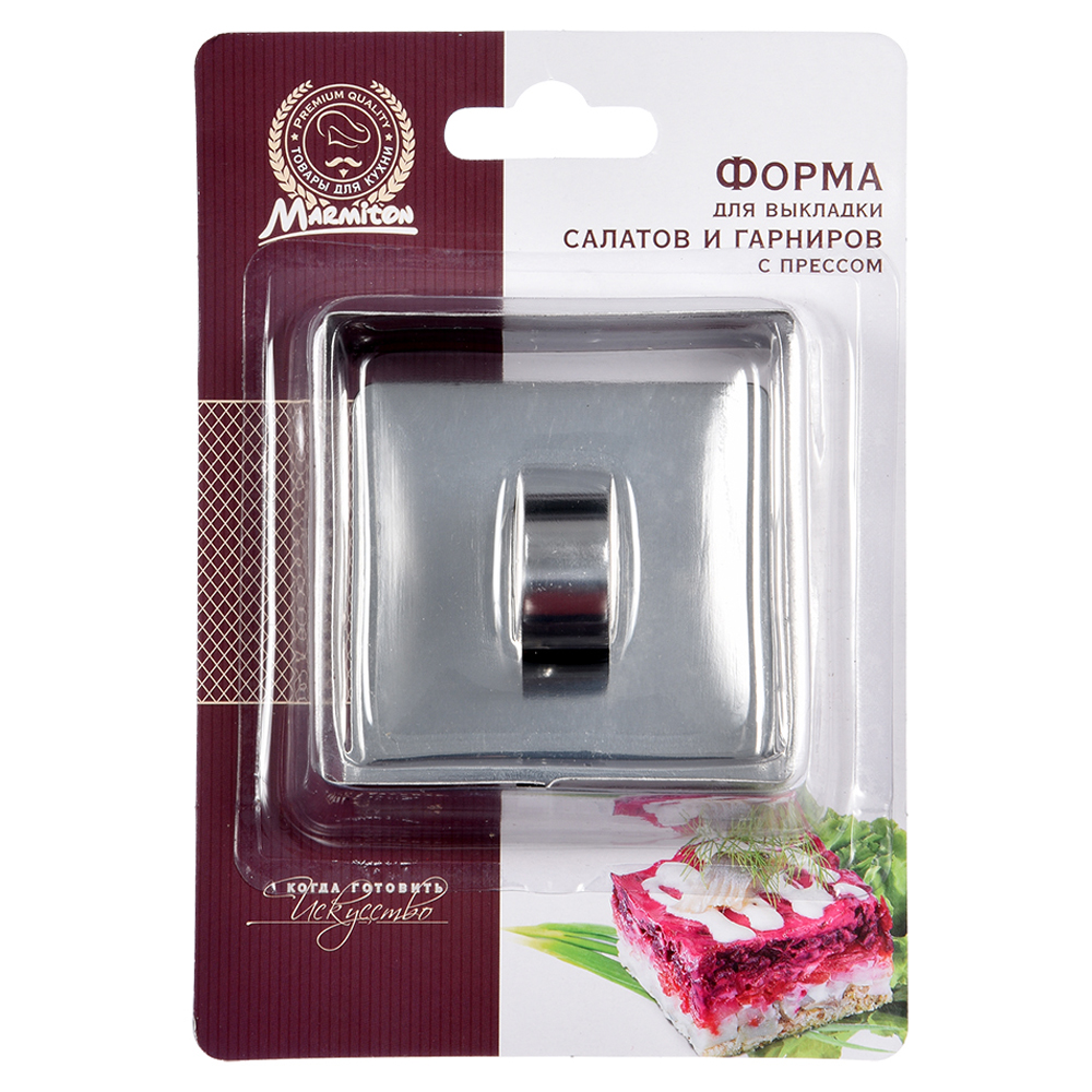 Форма для выкладки салатов и гарниров "Marmiton" изготовлена из нержавеющей стали. Изделие предназначено для декорирования блюд. С помощью формочки можно придать правильную форму салату, гарниру, яичнице или омлету, вырезать идеальные фигуры из теста.
