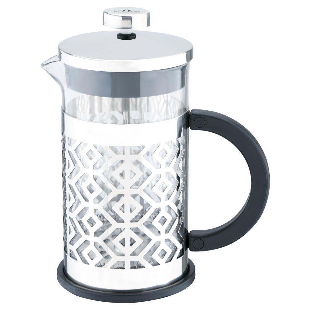Кофейник френч-пресс подходит для заваривания кофе и чая. Колба выполнена из жаропрочного стекла. Эргономичный поршень с фильтром из нержавеющей стали.