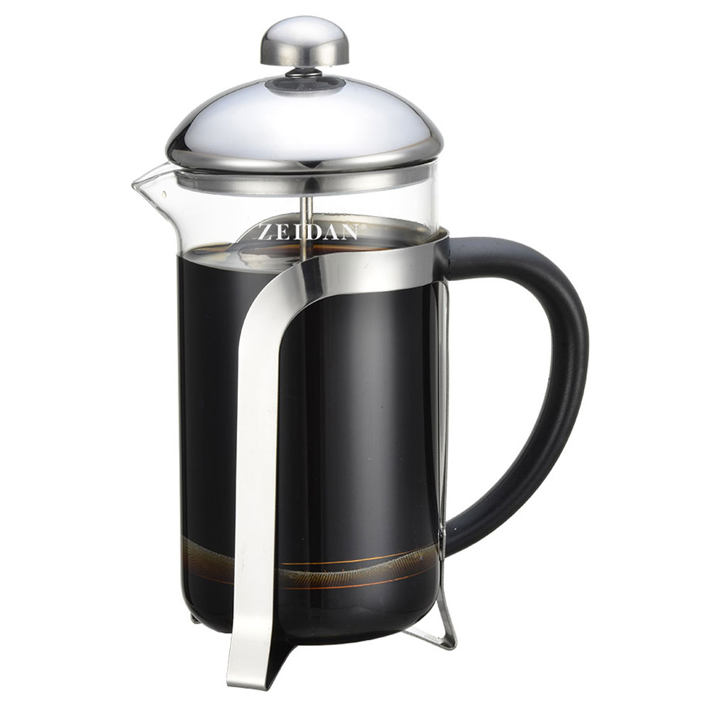Чайник заварочный с фильтром изготовлен из нержавеющей стали и высококачественного термостойкого стекла, которое выдерживает высокие температуры. Удобство и безопасность использования френч-прессов обеспечиваются за счет не нагревающейся ручки. Конструкция поршня использует металлический сетчатый фильтр с загнутыми краями. Это обеспечивает высокое качество фильтрации напитка. Корпус изготовлен из термостойкого стекла и высококачественной нержавеющей стали.