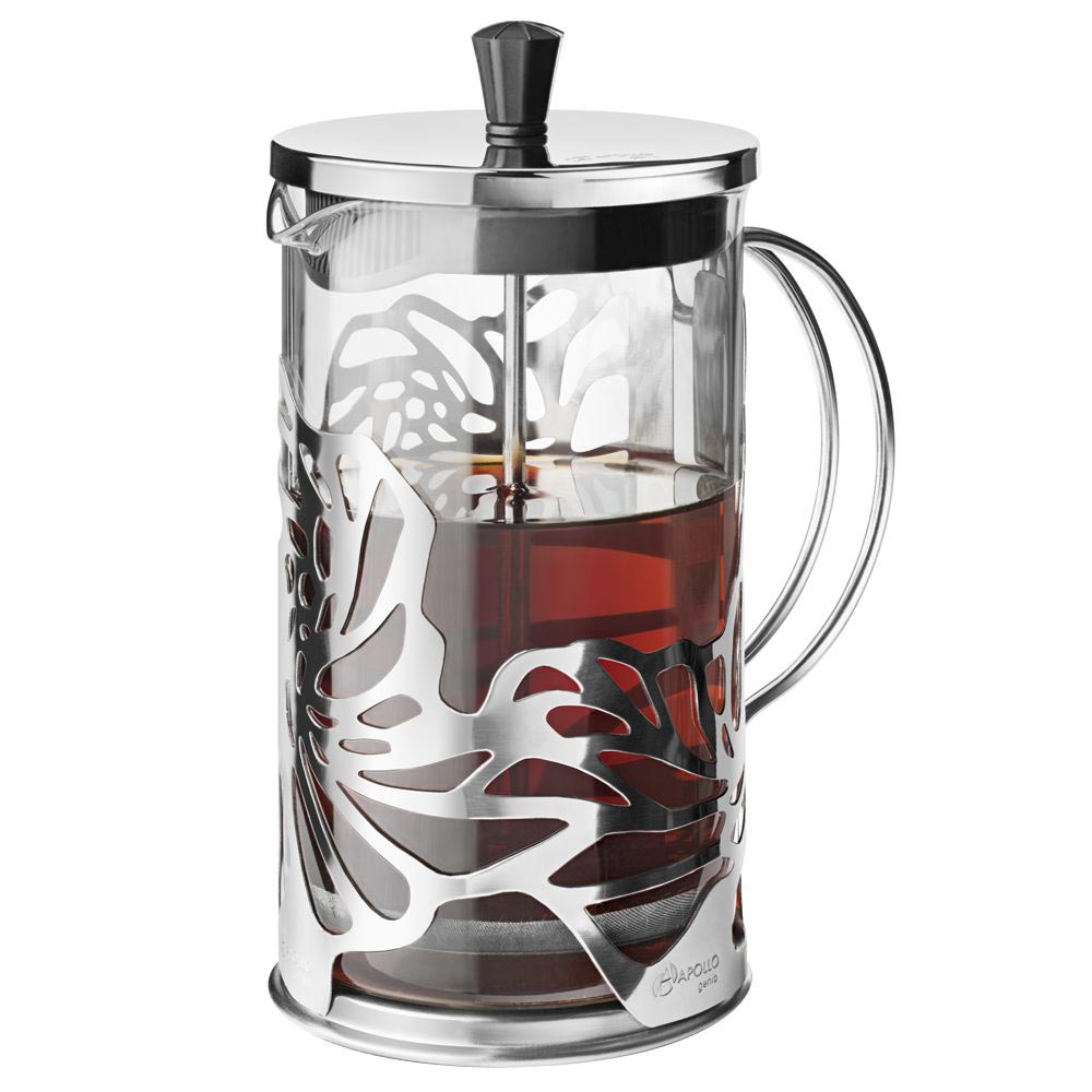 Френч-пресс Apollo Genio Cite Silver изготовлен из высококачественной нержавеющей стали, жаропрочного стекла и пластика.