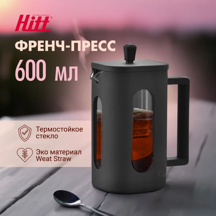 Практичный и стильный дизайн френч-пресса от бренда HITT порадует за чаепитием не только вас, но и ваших гостей. Изделие выполнено из инновационного материала Weat Straw. Это экологически чистый материал безопасен для здоровья и окружающей среды. Состоит из натуральных волокон пшеницы, крахмала и пищевого полипропилена. Заварочный чайник идеально подходит для чая, для травяных и ягодных сборов, а также подойдет для кофе.Стекло не впитывает запахи, поэтому заварник подходит для любых напитков. Форма носика идеальна для наливания напитков и препятствует проливания на стол. Ручка из пищевого пластика не плавится и не нагревается, что исключает ожог о френч-пресс.Минималистичный дизайн чайничка отлично впишется в любой интерьер кухни, а также будет хорошим и универсальным подарком.