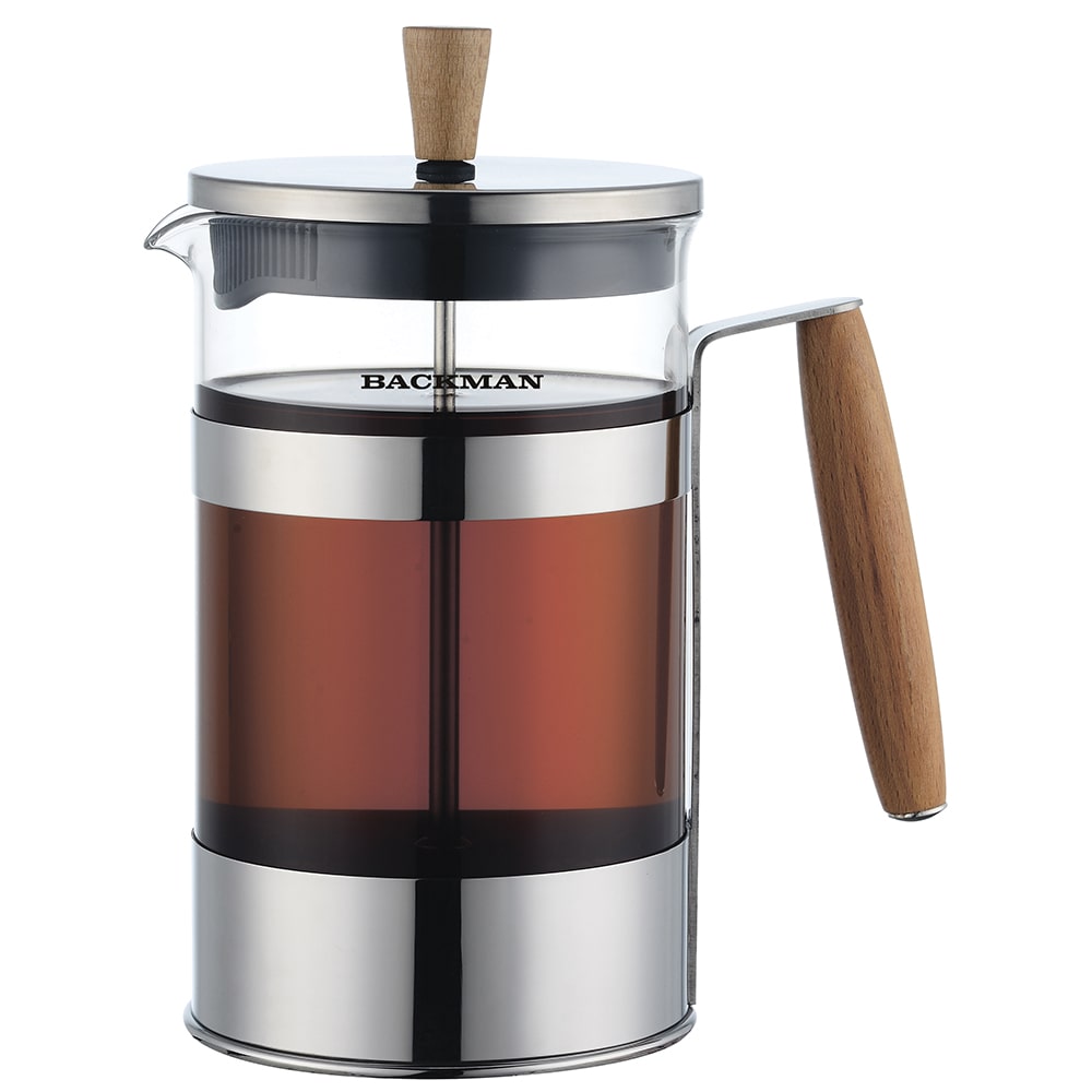 <comment>Нормальный френч-пресс за свои деньги. Объема 800 мл хватает на пару чашек. Главное, чтоб стекло не лопнуло.</comment>