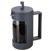 Френч-пресс выполненный в современном стиле, с элементами угла под 90 градусов, массивная ручка и серый цвет делают данную модель броской и выделяющейся на фоне остальных. Материал корпуса пищевой пластик. Материал колбы термостойкое боросиликатное стекло.