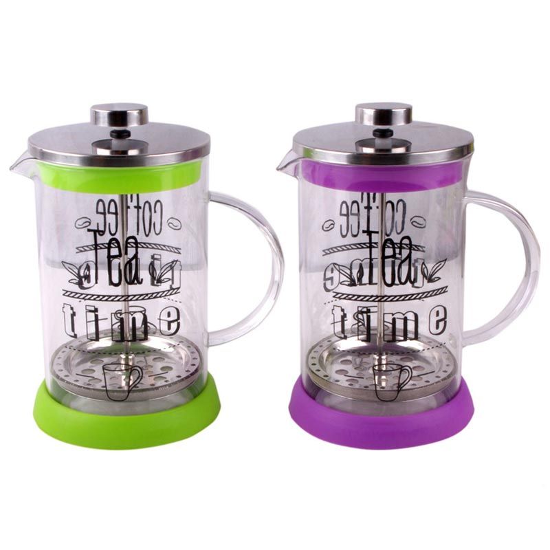 Френч-пресс используется для приготовления чая и кофе путем настаивания и последующего отжима заваренного напитка при помощи специального поршня. Корпус модели выполнен из нержавеющей стали с силиконовыми вставками, а колба — из устойчивого к перепадам температур стекла. Френч-пресс снабжен емкостью на 600 мл, эргономичной ручкой и носиком для удобства наливания напитков.