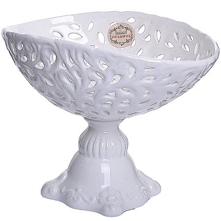 Фруктовница на ножке LENARDI выполнена из белой керамики и украшена оригинальным резным ажурным узором. Стильная форма и интересное исполнение идеально впишутся в любой кухонный интерьер, а классический белый цвет и изящный дизайн украсит праздничную сервировку стола к любому торжеству. Фруктовница предназначена для сервировки стола, а также станет замечательным подарком к празднику.