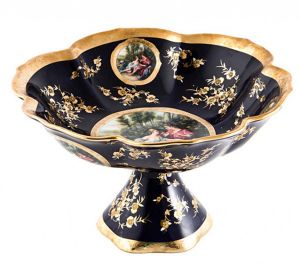 Темно-синий оттенок прекрасно гармонирует с золотистым узором. Такое блюдо станет великолепным украшением интерьера кухни и гостиной.
