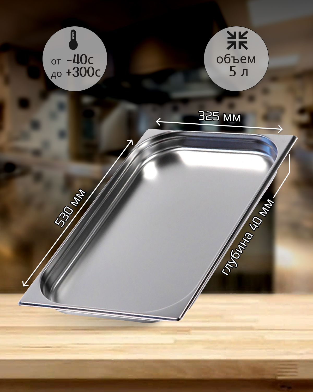 Гастроемкость имеет размеры 530х325х40 мм, что позволяет использовать ее в различных видах оборудования. Гастроемкость имеет глубину 40 мм, что обеспечивает достаточное пространство для размещения продуктов.