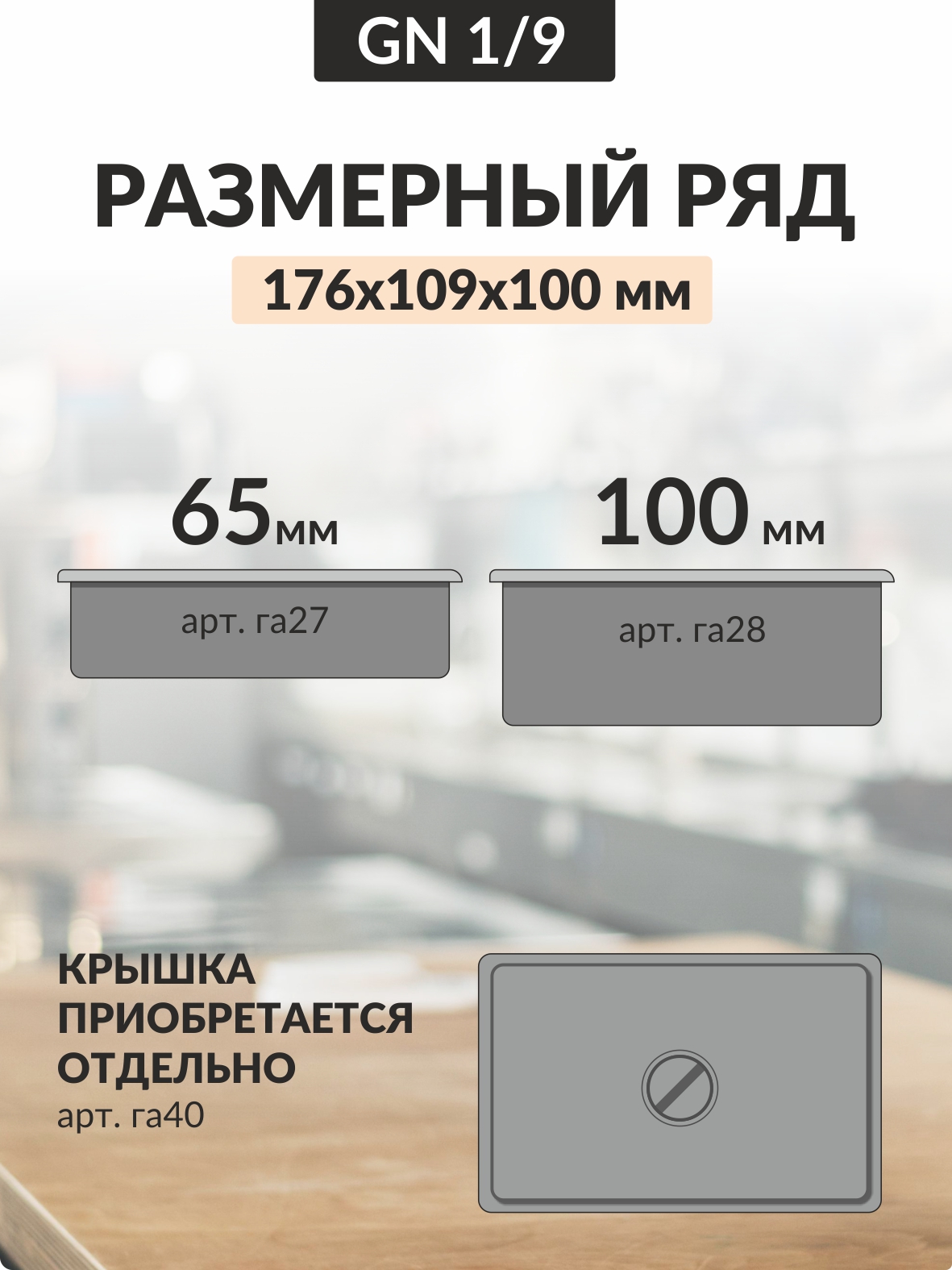 За основу принят формат, который соответствует обозначению GN 1/9 (176*109мм.)