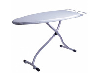 Подставка для утюга, с легкостью выдвигающаяся из-под основной рабочей поверхности, рассчитана сразу на две позиции и сможет уместить даже крупногабаритную паровую систему. Более того, специальные силиконовые вставки на подставке позволяют защитить подошву утюга от царапин, загрязнений и других неприятных повреждений. Доска легко складывается до компактных размеров и позволяет сэкономить пространство, которое, порой, бывает очень необходимо. Прорезиненные вставки на ее ножках исключают возможность скольжения и не царапают пол.