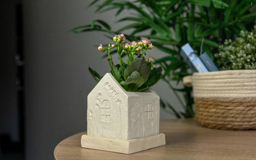 Декоративное кашпо из гипса в виде домика — стильный и уникальный предмет для дома. Гипс легко лепится и красится, что делает каждое изделие особенным. Ручная роспись и форма домика добавляют уюта. Кашпо имеет сливное отверстие и поддон для воды, подходит для разных растений. Гипс экологически чистый, безопасен для здоровья и природы. Можно использовать как подставку для салфеток или органайзер для мелочей.