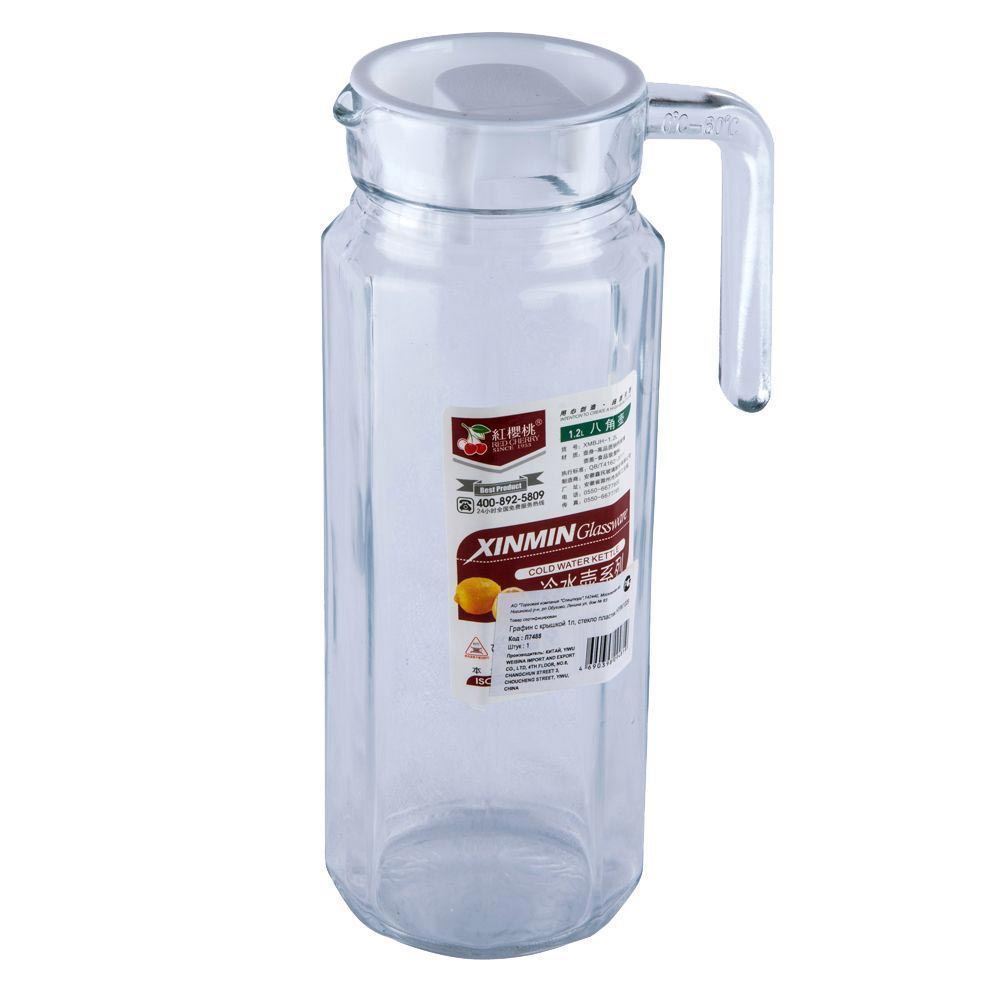 Графин с крышкой, выполненный из высококачественного стекла, оснащен крышкой и удобной ручкой.