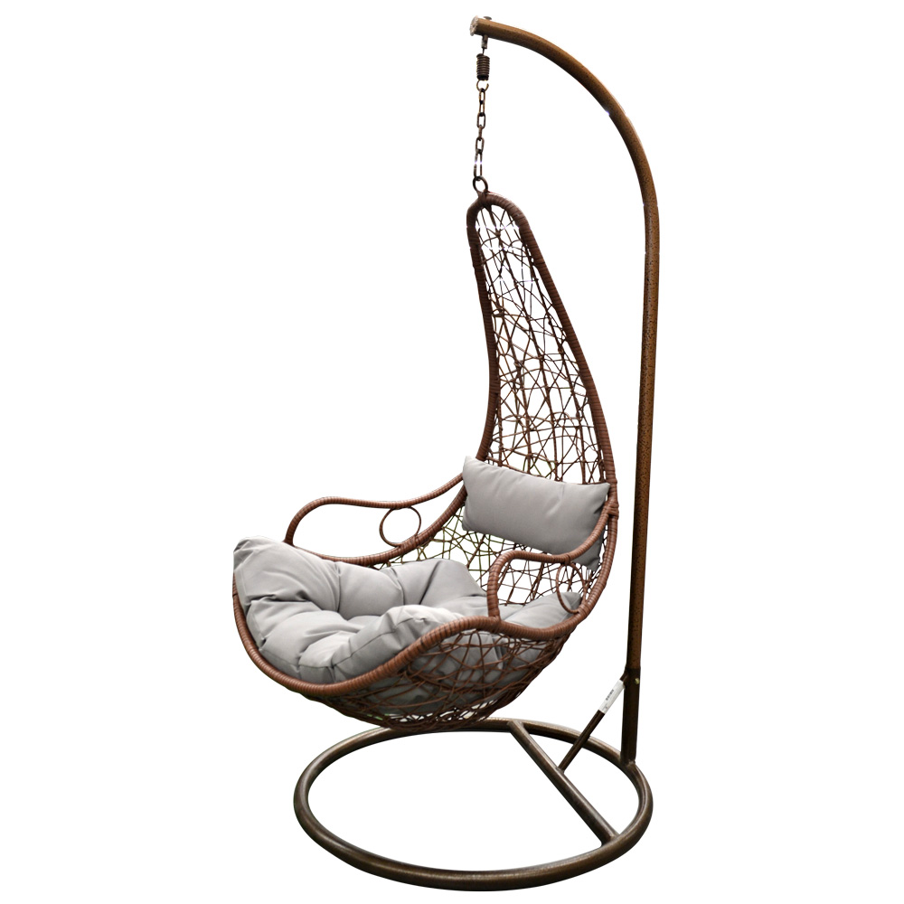 Качель изготавливается из искусственного ротанга, опора сделана из прочного металла, благодаря чему оно выдерживает значительный вес и его легко можно использовать на улице.