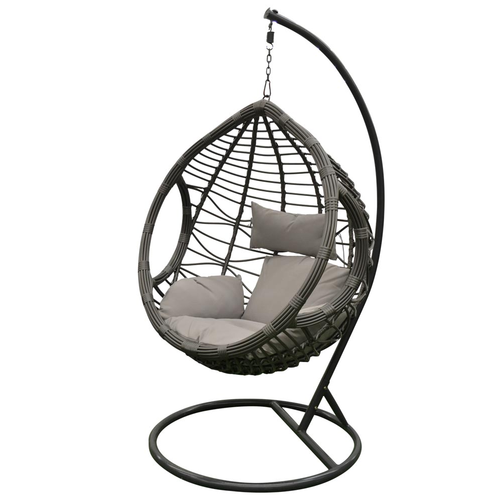 Качели изготавливаются из искусственного ротанга, опора сделана из прочного металла, благодаря чему оно выдерживает значительный вес и его легко можно использовать на улице.