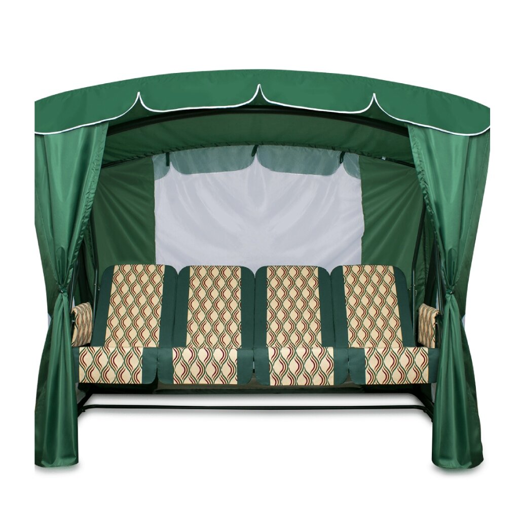 Тент качелей создает приятную прохладную тень и позволяет укрыться от палящих солнечных лучей или дождика.