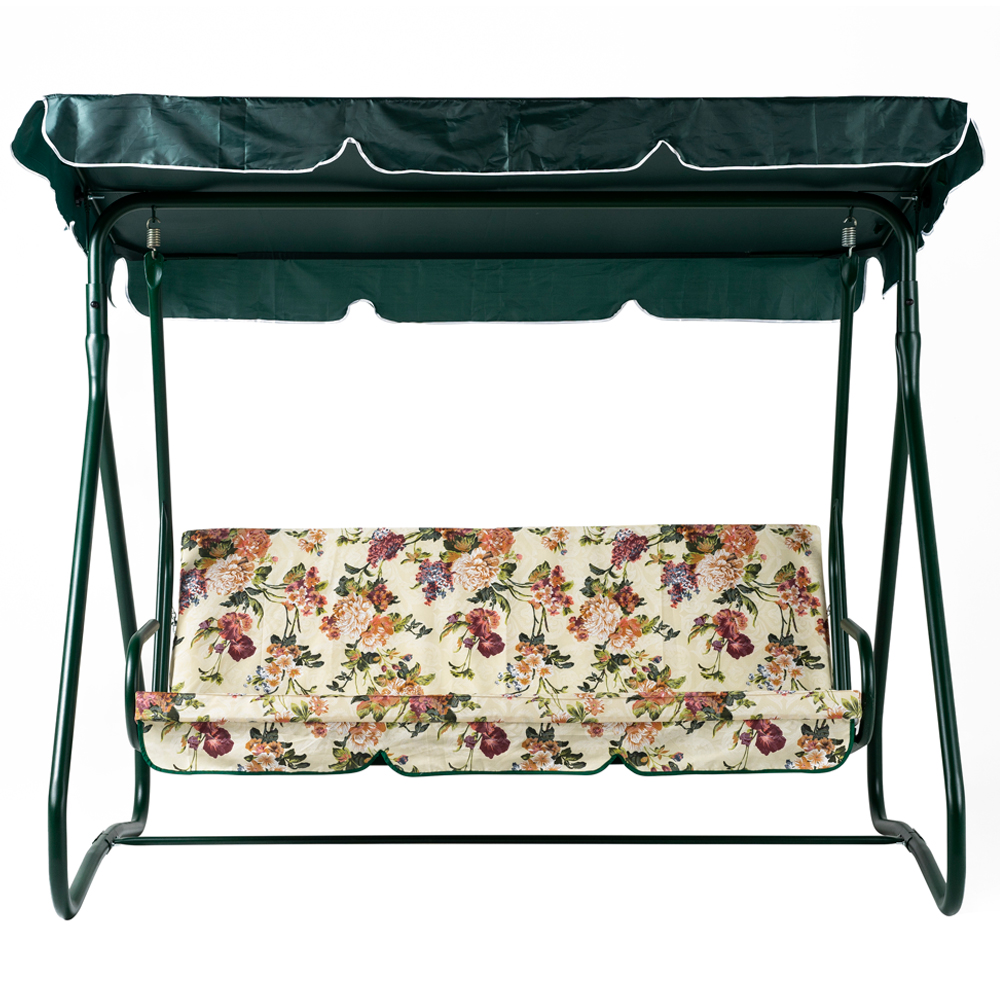 Продуманная до мелочей конструкция изделия позволяет гарантировать долгий срок эксплуатации, что важно для тех, кто привык приобретать надежные и качественные вещи. Если вы хотите расслабиться, отдохнуть от работы и городской суеты – эти качели созданы специально для вас! Под их широким тентом можно надежно спрятаться от палящих солнечных лучей или дождя, и при желании, позвать с собой членов семьи или друзей. На широком диване с комфортом помещается три человека.