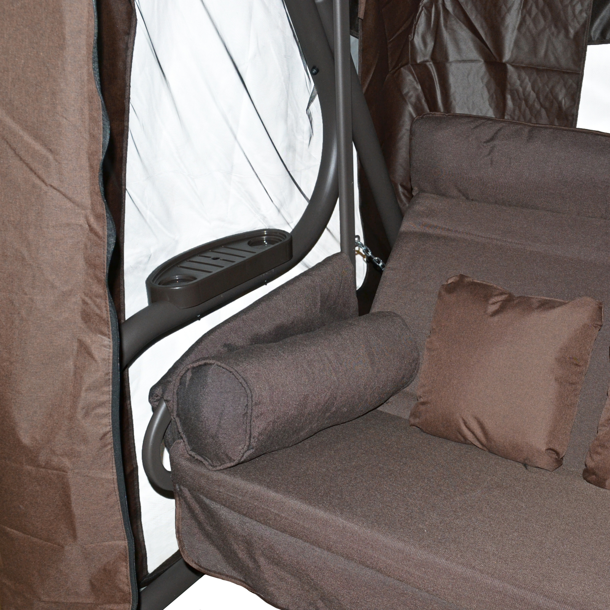 Качели садовые "Симона" помогут создать уютный уголок отдыха на садовом участке или придомовой территории. Приятный оттенок отлично дополнят ландшафтный дизайн. На таких качелях удобно отдыхать не только сидя, но и лежа. Сидение при необходимости раскладывается в двуспальную кровать. Крепкий металлический каркас легко выдерживает нагрузку до 250 кг.
