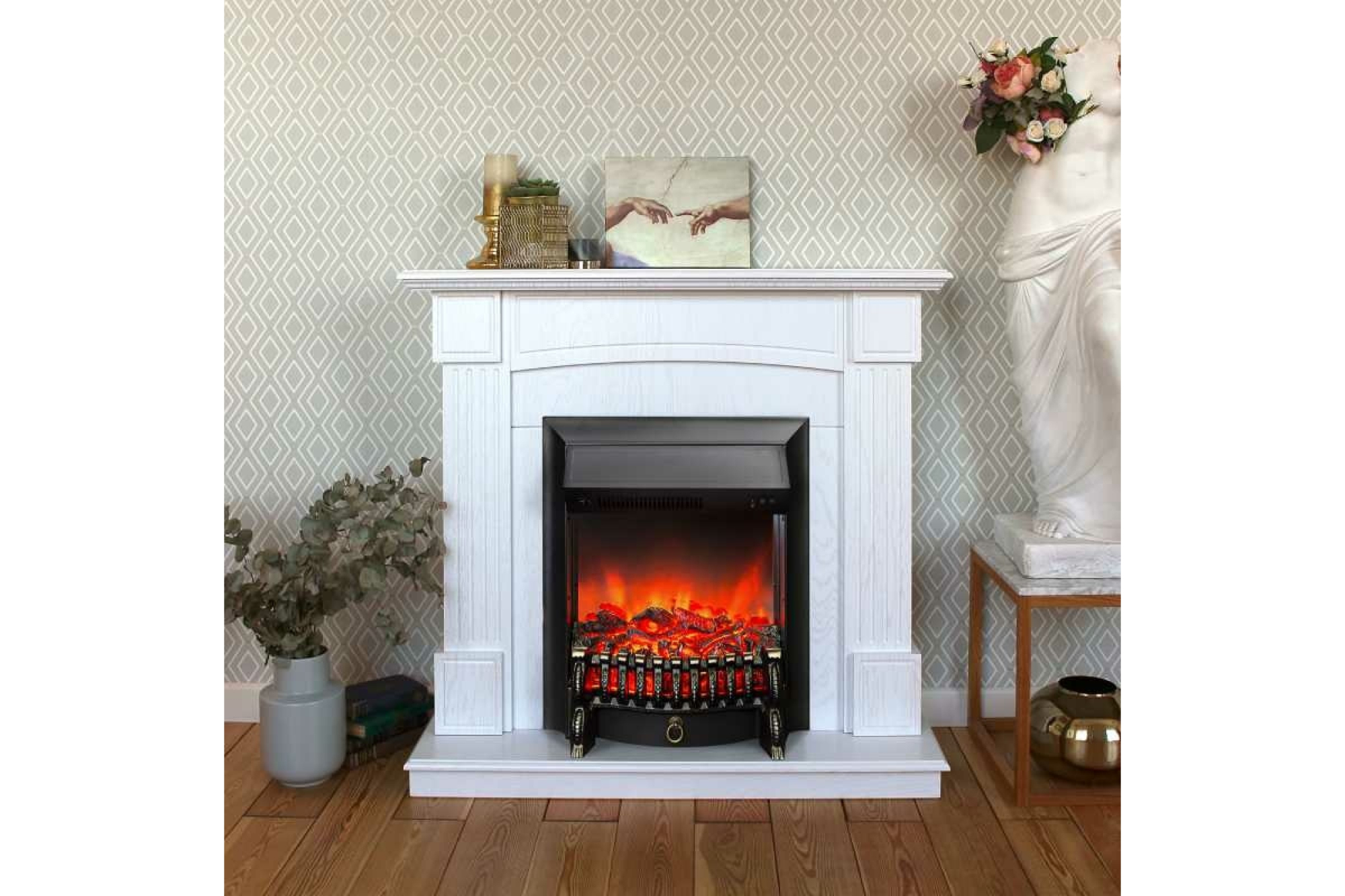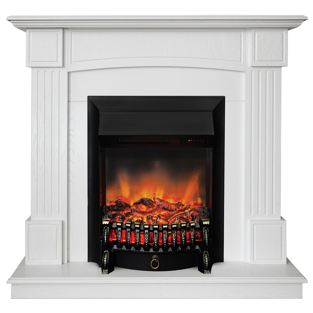 Электрический очаг Fobos Lux предназначен для встраивания в стандартные обрамления. В качестве муляжа - сгоревшие дрова. Нагреватель с поддувом спрятан в козырьке очага и обеспечивает обогрев в холодную погоду. Переключатель позволяет включать на полную (1 500 Вт) или половинную (750 Вт) мощность. В режиме визуализации пламени потребление электроэнергии составляет 80 Вт (две свечеобразные лампы E14 мощностью 40W).