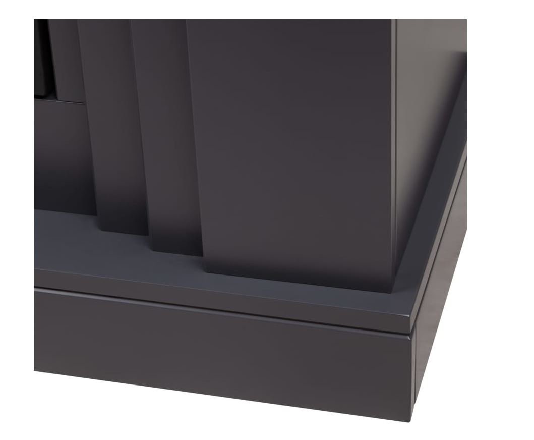 Электрокамин очаровывает ступенчатой геометрией и благородным стальным оттенком эмали. Изготовленный из МДФ каркас отличается прочностью и устойчивостью к деформации. Гладкое эмалевое покрытие обеспечивает простой уход за изделием и надёжную защиту от внешних факторов.