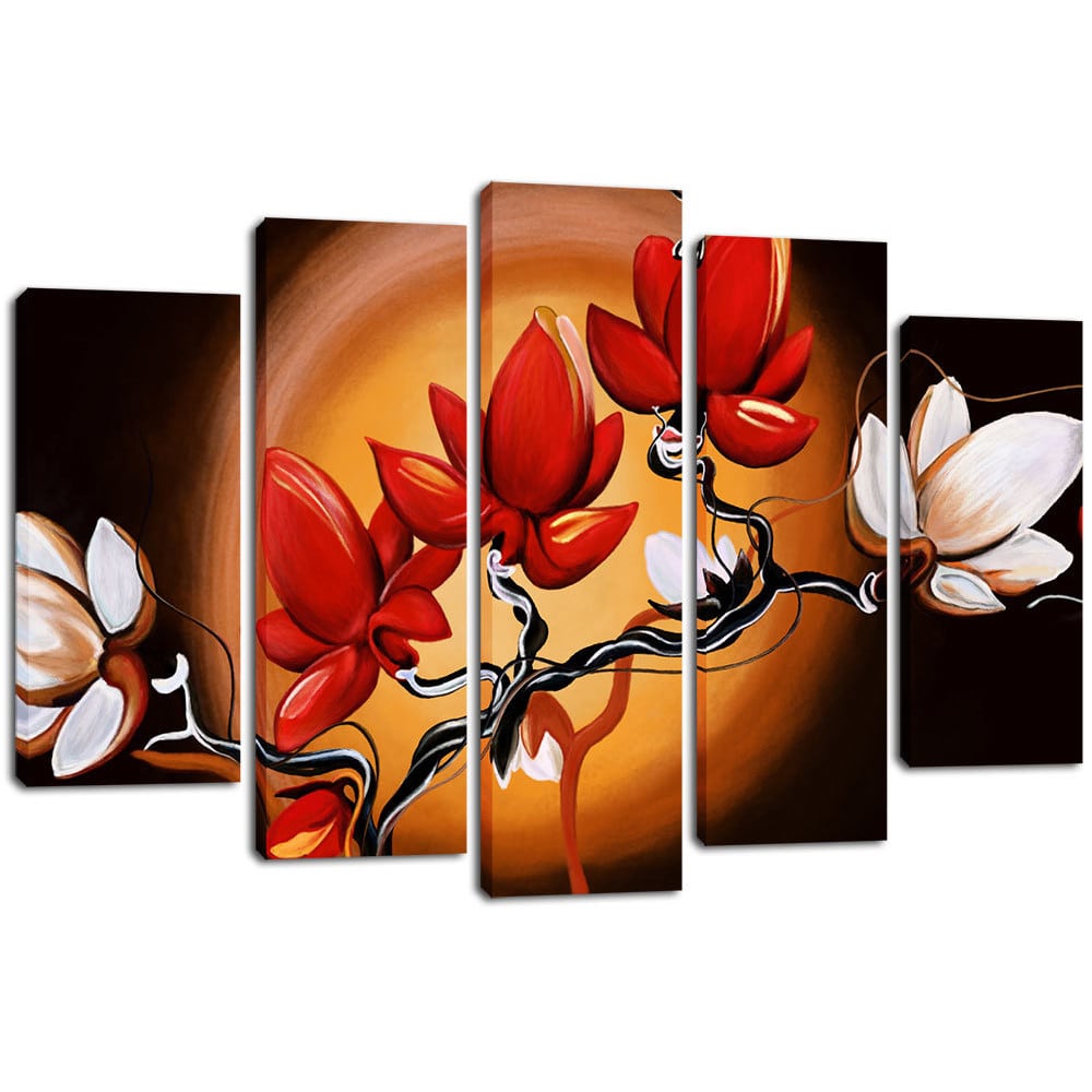 Несколько холстов, объединенные общей композиционной и цветовой идеей, позволят не только акцентировать внимание гостя на определенных деталях, но и удачно скроют неуместные конструкционные элементы дома.