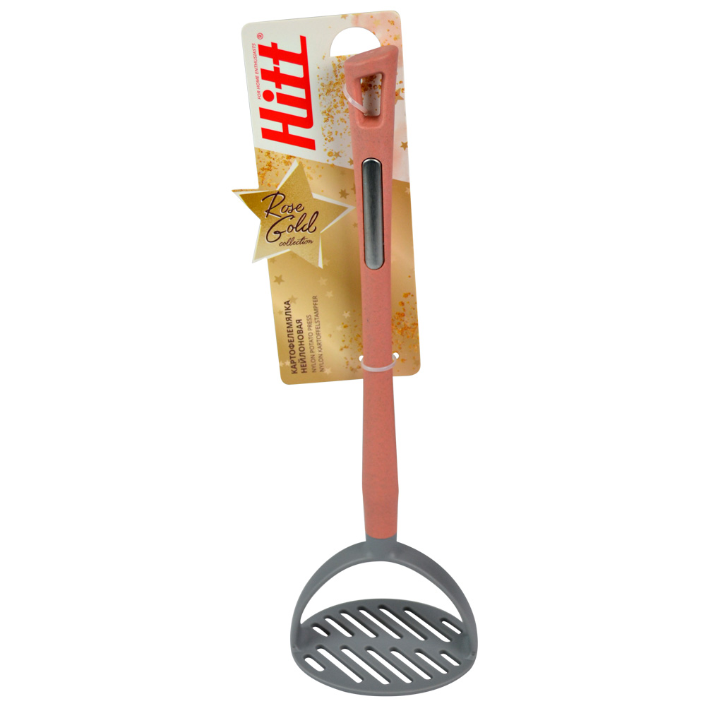 Рабочая часть кухонных аксессуаров Hitt Rose Gold изготовлена из пищевого нейлона. Картофелемялка подойдет для посуды с антипригарным и деликатным покрытием. Ручка нежно-розового цвета имеет покрытие soft-touch и отверстие для подвеса.