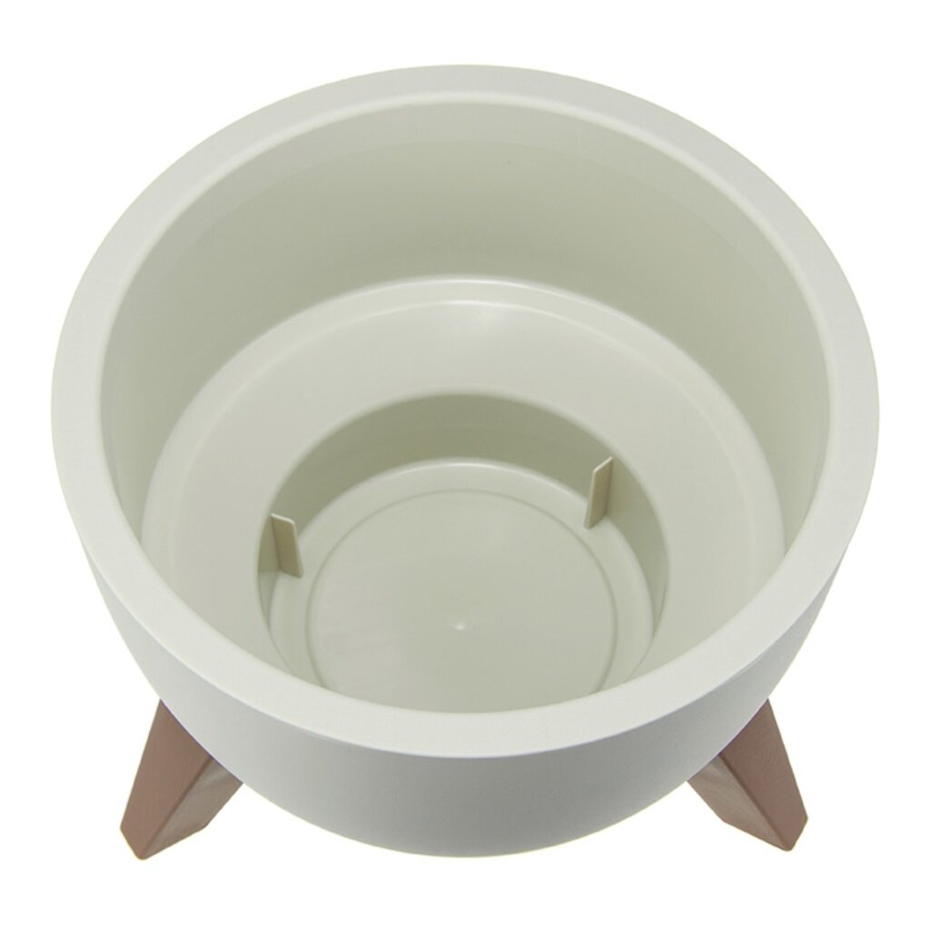 Кашпо со вставкой на ножках имеет круглую форму и матовую поверхность.