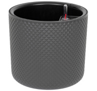 Кашпо ФАСЕТ состоит из основного горшка, вставки, а также из автополива. Благодаря вставке отсутствует необходимость в поддоне. Она отводит лишнюю влагу и создаёт дополнительный объём у кашпо.