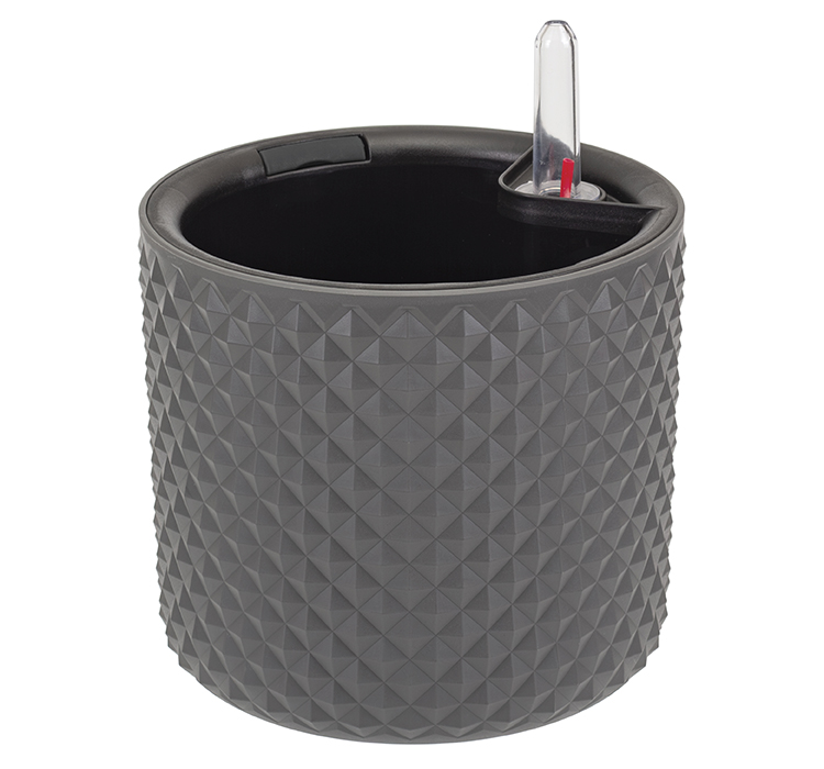Кашпо ФАСЕТ состоит из основного горшка, вставки, а также из автополива. Благодаря вставке отсутствует необходимость в поддоне. Она отводит лишнюю влагу и создаёт дополнительный объём у кашпо.