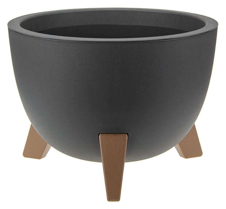 Кашпо со вставкой на ножках имеет круглую форму и матовую поверхность.
