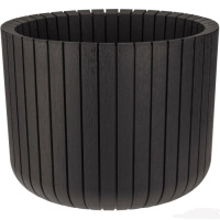 Кашпо Шато Изделие имеет цилиндрическую форму. Поверхность с имитацией дощечек и фактуры древесины, приятна на ощупь, отличается долговечностью и простотой в уходе