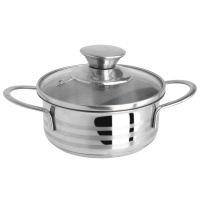 Кастрюля из нержавеющей стали, капсулированное дно, крышка стекло с пароотводом.