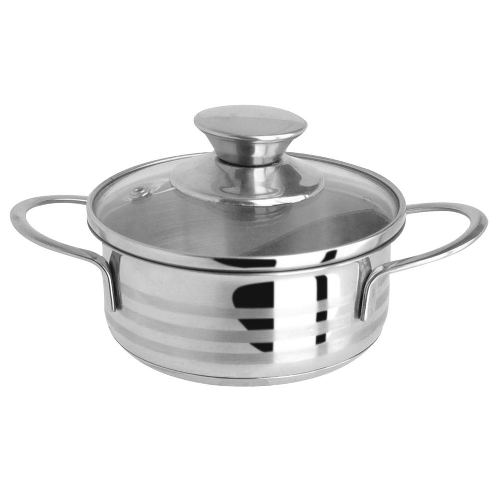 Кастрюля из нержавеющей стали, капсулированное дно, крышка стекло с пароотводом.